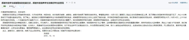 宋老师在信中写到“一个优盘的经济价值虽不太大,但里面存储的各种资料对我来说太重要了。胡瑞琨同学做的这件事虽然很小,但意义却很大。对于学生这样平凡却高尚的行为,作为思想政治教育工作者,我个人感觉应当积极地关注,在适当场合以适当方式加以表扬和赞扬。”