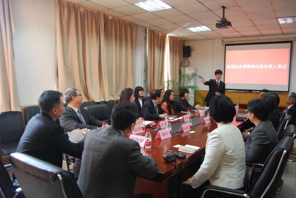 11月7日,住友商事株式会社常务田渕正朗,住友商事(中国)企业集团东亚総代表辅佐若林稔久、住友商事株式会社环境・CSR部长代理江川友浩、住友商事株式会社环境・CSR部社会贡献组主任三浦由美子、住友商事(中国)有限公司总务・广报・CSR部部长傅晓炯、天津住友商事有限公司总经理山田英典等一行10人访问伟德betvlctor1946体育,院长阎国栋会见了田渕正朗一行,副院长焦艳婷,院党委副书记、副院长李娜,院长助理马红旗教授,日语系副系主任韩立红教授等陪同。首期获得住友商事留学奖学金支持赴日本留学的2013级日语系本科生崔雪婷参会并发表感言。东亚文化研究中心主任王凯副教授主持会议。