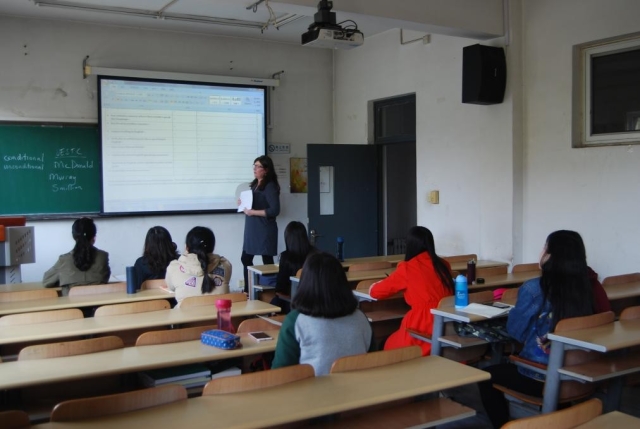 语言培训为期四周,由英国格拉斯哥大学语言中心的Jennifer老师为同学们讲授,培训课程主要是培养学术规范,帮助学生掌握学术英语技能,着重于写作。课程偏重内容型,涉及到翻译的相关知识。除学术英语外,培训课程的另外三个主要目标是培训学生的自主学习、批判性思维和合作意识。课程期间,同学们彼此了解,互相练习英语口语,增进友谊,为新学期的开始做好积极的准备。同学们上课都非常投入,显然他们已经做好了心理准备,以饱满的精神面貌迎接全新的英语翻译课程和美好的南开新生活。