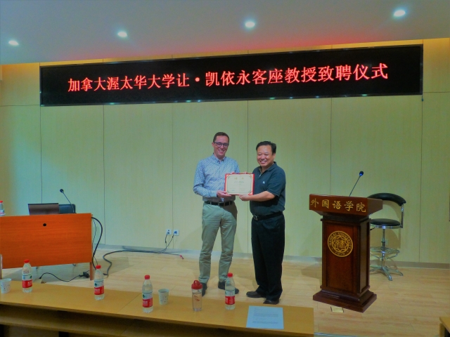 外院网站讯(通讯员 孙喜晨 刘维爽)近日,加拿大渥太华大学翻译学院院长教授让·凯依永的致聘仪式在伟德betvlctor1946体育举行,我校伟德APP下载地址院长阎国栋教授、副院长杜卫华、翻译学研究中心主任苗菊教授、MTI教育中心主任王传英教授以及英语和翻译系部分教师代表、天津外国语大学王洪涛教授等出席,致聘仪式由院长助理马红旗教授主持。