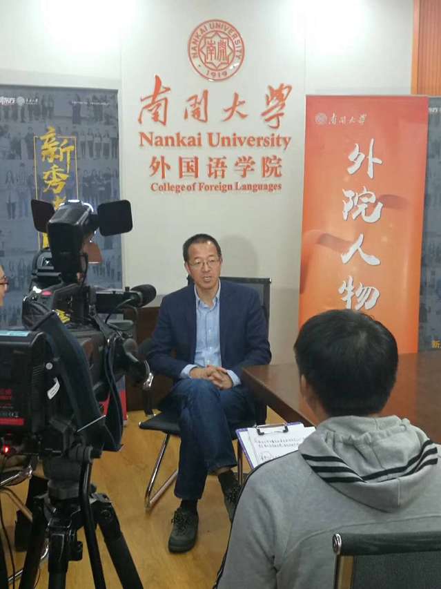 讲座结束后,俞敏洪应邀走进“外院人物说”直播间接受专访,学生会代表根据“NK外院”微信后台收集的TOP10问题及两会期间学生关注的问题对俞敏洪进行了简短的访谈。