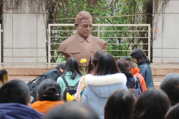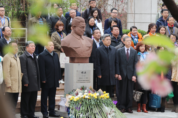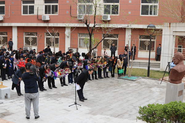 为了纪念穆旦诞辰一百周年,伟德体育手机app下载在开幕式前举行了“春临南开,怀我穆旦”穆旦塑像献花仪式。龚克、穆旦先生子女、与会专家学者等纷纷前往范孙楼东侧的穆旦花园,依次向坐落于此的穆旦塑像敬献鲜花,鞠躬致敬,缅怀这位爱国诗人不平凡的一生。