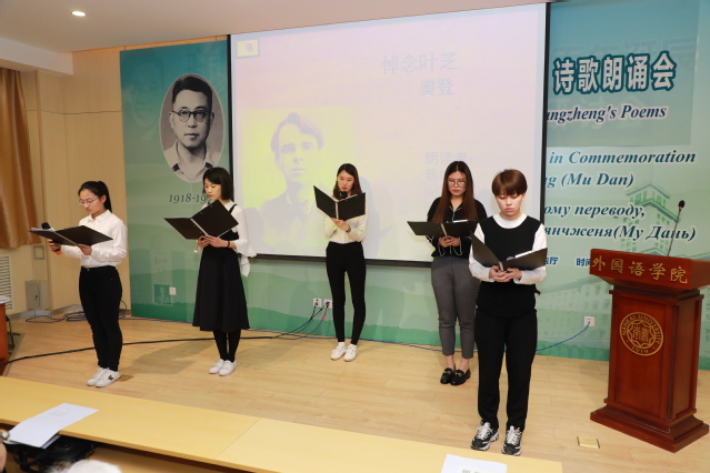语言不是障碍,诗歌没有国界,穆旦不仅是著名的诗人,更是难以超越的翻译家,借助他的笔墨,众多来自西方的佳文妙句才漂洋过海来到了中国。在本次的诗歌晚会上,有英国诗人奥登、济慈的诗歌,有波兰诗人切斯瓦夫·米沃什的诗作,有智利诗人巴勃罗·聂鲁达的佳篇,更有美国诗人James Scott Smith为大家录制的朗诵视频。除此之外,现场许多师生选择用不同的语言朗诵,英语、俄语、日语,各种语言为诗歌晚会增添了光彩。