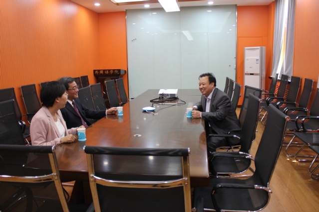 阎国栋院长、杨玉平老师与李军教授亲切交谈