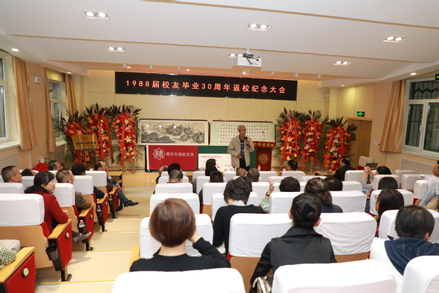 (通讯员 王泽璞)10月13日下午,伟德APP下载地址举行原外文系1988届校友毕业30周年返校纪念大会。来自海内外的84级校友、85级研究生校友参加了活动。伟德APP下载地址党委书记邹玉洁、院长阎国栋、副院长马红旗、院办主任赵国强等出席。时任英语系教师常耀信教授、刘士聪教授、蔡丽文教授、蒋华上教授,日语系刘桂敏教授等参加纪念活动。