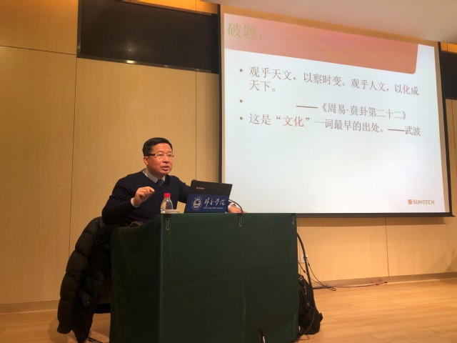 武波教授从《周易》入手,引出文化。武教授指出,中国文化的本质是道学,文化的许多方面都是可以通过“道”解释的,要翻译好中国文化,首先要了解文化的内涵与特质。然后,武波教授提到了“翻译中国”的两大原则:内外有别,话随境变。武波教授结合国内外的不同案例,深入浅出的解释了国内外思维方式与表达的不同。最后,武波教授指出“翻译中国”的两种方法:迻文译化“大”翻译;原汁原味,易通百通。武波教授结合具体的翻译案例,具体阐述了以上两种方法。武波教授还强调,文化是多样性的,文明也是有落差的,所以对外传播要讲究中庸之道,不可一厢情愿。同时,作为翻译的学习者,也要修炼内功,不断提升自己的能力。