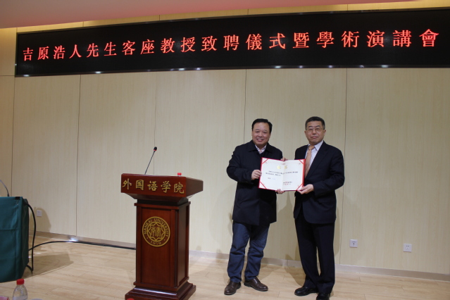 致聘仪式于16时在伟德APP下载地址学术报告厅隆重举行。刘雨珍首先介绍了吉原教授的简历和业绩,阎国栋为吉原教授颁发聘书并致辞:我们有幸聘请吉原浩人先生为我院客座教授,虽然没有“家人教授”一词,但却亲如一家,请吉原教授相信,我们会如家人般保持友好关系。
