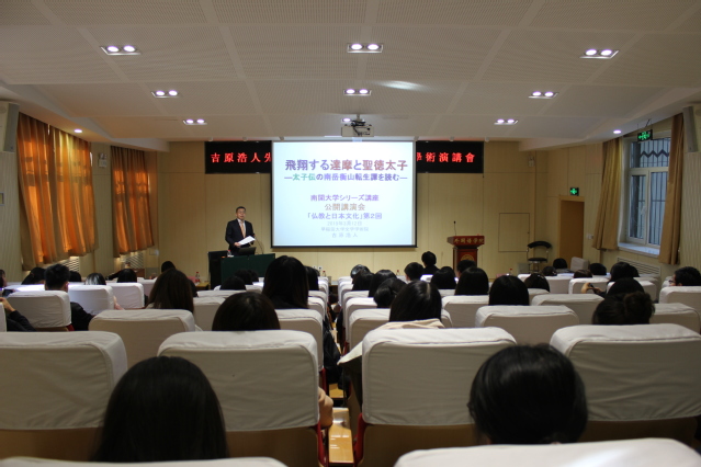 随后,吉原教授做了题为“飞翔的达摩与圣德太子——解读太子传中的转世故事”的学术讲座,本次讲座也是他在伟德APP下载地址举办的《佛教与日本文化》系列讲座的第二讲。他先对圣德太子及太子的传记情况进行了简单介绍,并通过丰富的图片和生动的语言,对《圣德太子绘传》所描绘的故事以及衡山的地理地貌进行了详细讲解。他着重谈到南岳慧思与达摩祖师的会面、以及慧思与达摩、慧思与圣德太子之间的转世和飞翔等关系。最后,对衡山取经故事何时开始进行了一番考证。
