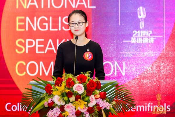 本次全国决赛分为半决赛和总决赛两轮,参赛选手由超过70位来自全国24个赛区顶尖高校的选手组成。竞赛分为定题演讲、即兴演讲和评委提问3个环节。本届全国半决赛的定题演讲题目是“Reform and Opening up—A personal perspective”,选手们紧扣主题,以流利的口语和缜密的思维展示英语演讲能力。即兴演讲中,选手们面对随机抽取的演讲话题,在限定时间内,积极思考、展现自己综合的人文素养。评委提问环节,选手们对答如流,对评委提出的问题给出更加深刻的见解。经过两天的激烈角逐,王志怡以优异的成绩晋级全国12强,获得了参加最后一日全国总决赛的入场券。