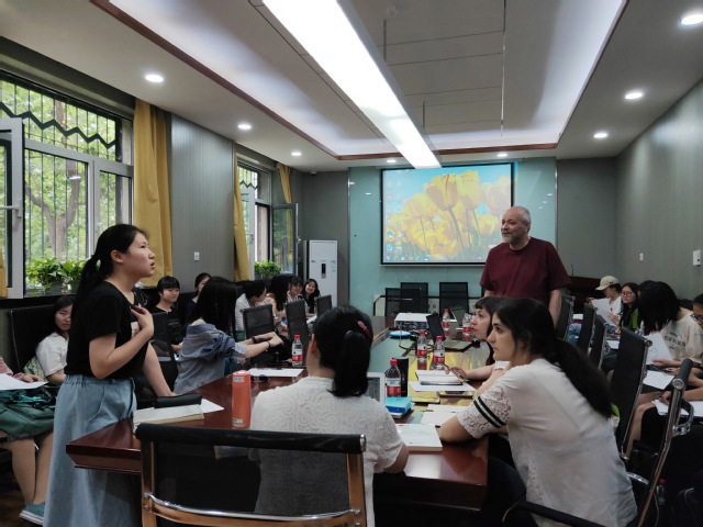 在第二场讲座中,皮内罗博士鼓励同学们用近义词或相同词性的词对诗文选段的内容进行替换改写,“创作”新诗。皮内罗博士准备了丰富的文字游戏练习,如回文练习、字谜、双关语、单词派生等。皮内罗博士还以模型的形式为大家讲解了句子结构。
