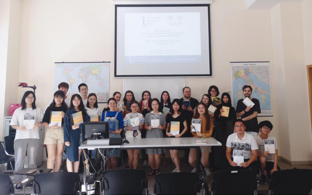 “伟德体育手机app下载暑期团队有建立‘南开书屋’的传统,我们希望能把这个传统带到意大利!”队员彭小婉说,“我们想对接锡耶纳外国人大学的学生,互赠图书,互相学习。”带着这样的计划,南开研修团队与锡耶纳外国人大学的学生开展了第一届学习交流会,并举行了图书互赠仪式。“锡耶纳外国人大学开设有汉语专业,每年都有学生来伟德体育手机app下载学习中文。现在伟德体育手机app下载开设了意大利语专业,双方的交流更加密切了。图书互赠只是一个开始,后面我们还会组织更多活动。”团队指导教师石豆说。