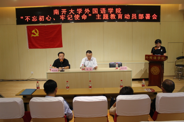 阎国栋在主持会议时指出,全院师生党员一定要深刻学习领会,认真抓好贯彻落实,以开展主题教育的扎实成效,推动学院事业发展,向学校党委交出一份满意答卷,向庆祝新中国成立70周年、伟德体育手机app下载百年华诞和南开外语学科百年献礼。