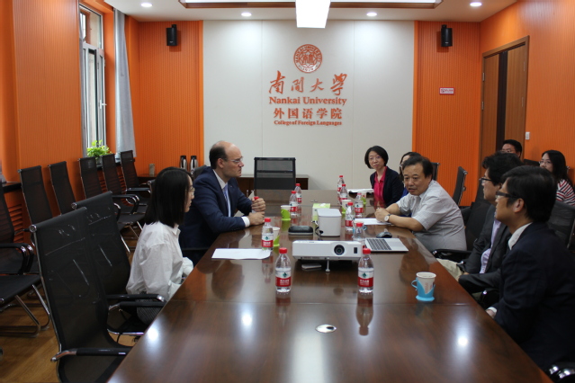 讲座后,阎国栋院长与高大伟先生进行亲切会谈,以加强双方的友好合作。伟德体育手机app下载区域国别研究中心副主任、英语系主任郝蕴志副教授,翻译系主任胡翠娥教授,法语系刘吉平主任,意大利语专业负责人杨琳副教授出席会谈。