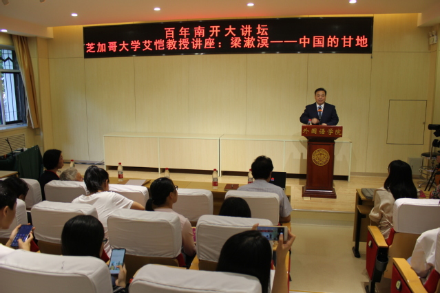 据悉,本次讲座是“百年南开大讲坛”的系列讲座之一。阎国栋院长为艾恺教授颁发“百年南开大讲坛主讲人”纪念牌。在讲座前后,阎国栋院长、王凯副院长分别与艾恺教授亲切会谈,意大利语专业负责人杨琳参加会谈。
