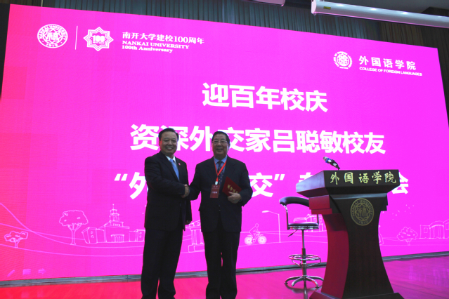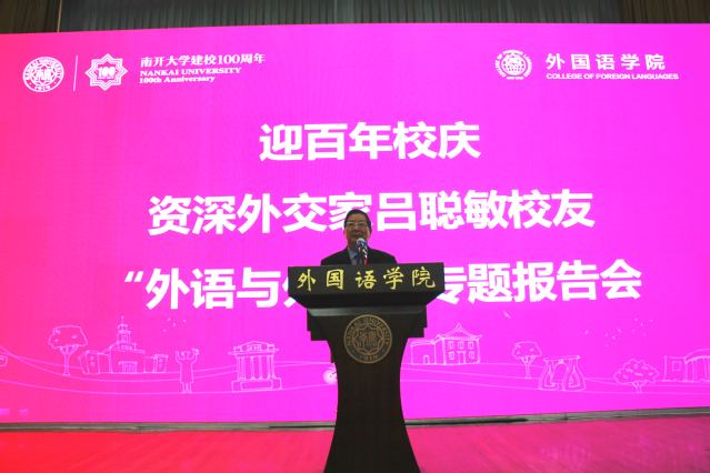 (通讯员 赵国强 王泽璞 崔丽月)10月17日,在伟德体育手机app下载建校100周年之际,伟德betvlctor1946体育1958级英语专业校友、中国资深外交家吕聪敏以“外语与外交”为题,为全院师生讲授形势与政策课。伟德APP下载地址党委书记邹玉洁,院长阎国栋,副院长焦艳婷,副书记、副院长相羽,南开外语校友会秘书长高天明,李霁野先生后人李正辉出席,副院长马红旗主持,2019级本科生和本硕博党员共计300余人现场聆听了报告,另有500余名师生在线观看录播。