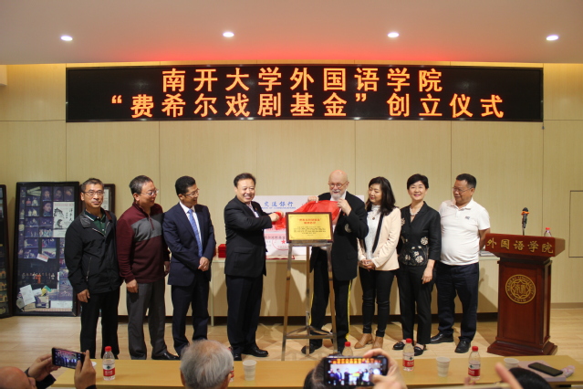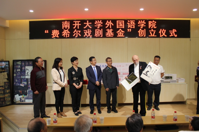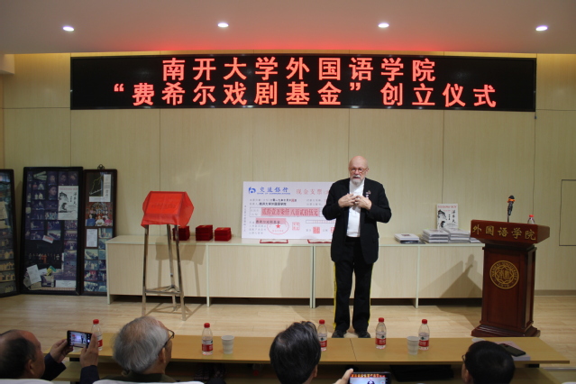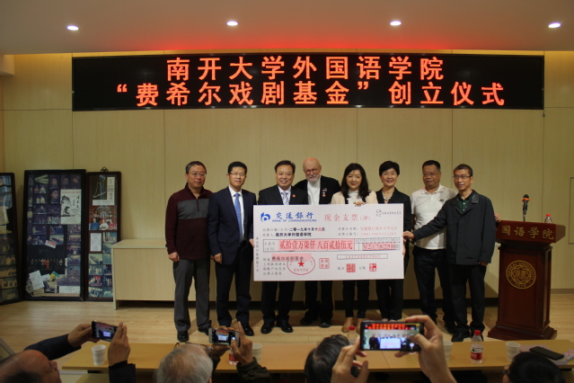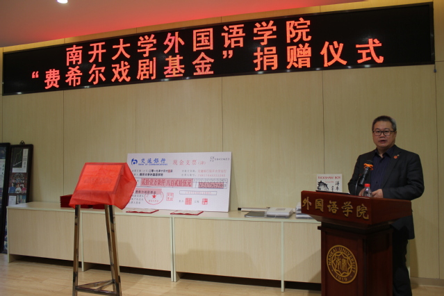 “费希尔戏剧基金”由蔡本红等当年参加外文戏剧表演的学生发起。设立仪式中,阎国栋和费希尔为基金揭牌,校友代表向学院递交了捐款支票217825元,阎国栋为基金捐赠者颁发捐赠证书。阎国栋在致辞中提出,戏剧是丰富和补充外语教学的重要环节,是学科发展的重要手段。继费希尔先生开创海外表演中国戏剧之后,伟德体育手机app下载日语系、俄语系学生剧团相继在国内外演出,这是中华文化“走出去”的一大创举。“费希尔戏剧基金”的创立具有重要意义,希望伟德APP下载地址师生共同努力,续写南开享誉四海的戏剧传统。他赞扬了校友们心系外院发展和反哺母校的精神,希望发扬学生剧团的号召力、影响力和凝聚力,延续伟德betvlctor1946体育的戏剧表演血脉。