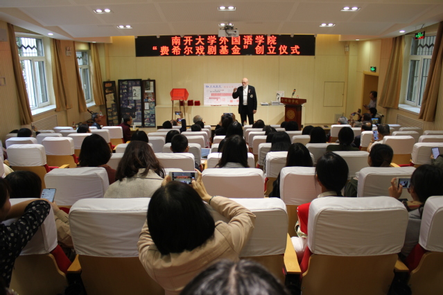 马红旗首先介绍了费希尔先生,费希尔中文名“费念华”。1982年费希尔夫妇来到南开,在外文系进行了五年的英语教学,为伟德体育手机app下载戏剧发展留下了宝贵的财富。南开与戏剧有深厚的渊源,为了给学生提供形式多样的英语学习机会,费希尔夫妇决定让学生用英语表演中国戏剧。在伟德体育手机app下载的支持和费希尔夫妇的努力下,1986年,南开外文系学生剧团表演的《雷雨》在美国明尼苏达州九所大学及斯坦福大学成功进行多场演出,这是中国大学生首次在境外用英语表演中国话剧。1987年,费希尔带领外文系学生剧团第二次走出国门,《骆驼祥子》在美国中部十所大学成功演出多场,引起轰动。2009年,费希尔获得天津市政府“海河友谊奖”。