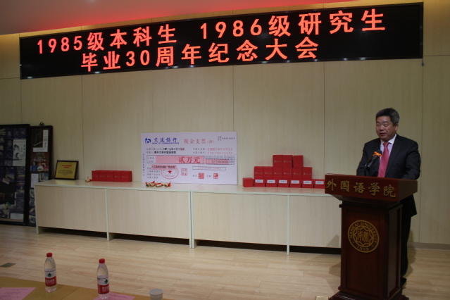 邹玉洁发表了热情洋溢的致辞,她代表学院全体师生热烈欢迎1985级本科生、1986级研究生校友荣归母校。邹玉洁全面介绍了学院学科建设、学术科研、人才培养、国际化建设、学生工作等方面的发展现状。同时,对校友们捐资助力学院发展的行动表达了感谢。在伟德体育手机app下载建校100周年之际,邹玉洁也向全球南开外语校友表达了良好祝愿和衷心问候!