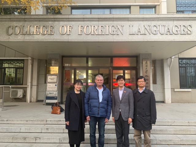 11月7日,Christopher Länzlinger教授与法语系教师吕颖、付书辉、种艺泽、王彩霞和外教Edwige就法语语法教学进行了深入交流,以语言学视角给出了专业的建议,对法语系日后的语法教学具有指导意义。