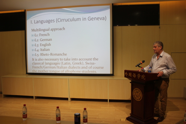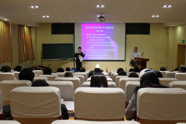11月9日与10日下午,Länzlinger教授在伟德APP下载地址分别进行了以《interlinguistic approaches》和《un voyage à travers la grammaire française par le métalangage》为主题的两场讲座。第一场为英语讲座,全场座无虚席,有来自日语系、英语系和法语系的众多外院师生参与,赢得了热烈的反响。第二场为法语讲座,法语系师生积极参与,认真聆听,同学们在讲座结束后踊跃提问,表示受益匪浅。此次访问,不仅为学院师生提供了学术交流机会,而且对法语系乃至伟德APP下载地址的国际交流项目意义重大。