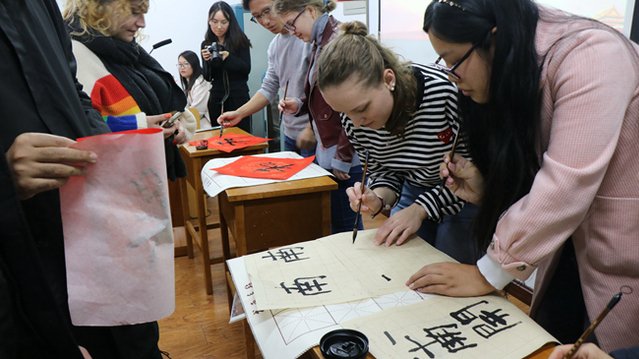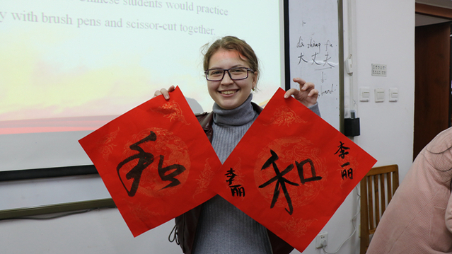 活动期间,外院学子与留学生还共同体验了书法和剪纸等中华传统艺术形式,铁画银钩,团花飞舞之间,深沉墨色与灵动万物跃然纸上,中华文化的韵味也流入了中外学子的心中,此次的交流体验也让留学生们品味到这种博大精深的魅力。