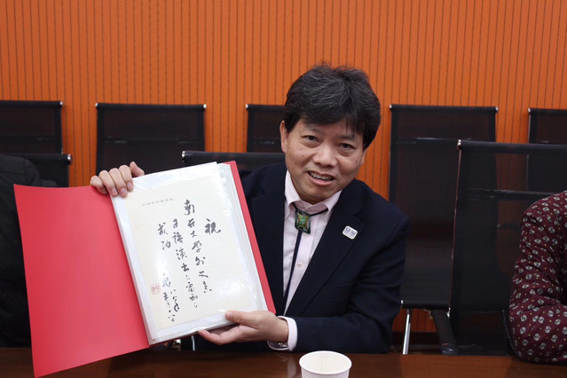 阎国栋对池上夫妇表示感谢,他谈到,池上正治和池上贞子老师对日语剧组及赴日公演做出重要贡献,感谢他们为伟德APP下载地址保留了这份珍贵的资料,这体现池上夫妇对中国和伟德体育手机app下载的深厚情感,反映出中日两国人民之间交流的密切、通畅和真挚。曹禺先生作为《雷雨》的作者、中国现代话剧艺术奠基人,他的剧作人生也起步于南开,先生的题字不仅证明了南开外文剧社过去的辉煌,也是对当今外院学子成长成材的激励。南开外语人要继承南开的爱国主义精神,传承外语学科的优良传统,在人才培养、师资队伍建设、科学研究、国际化、学生工作和社会服务等方面取得更大成绩。