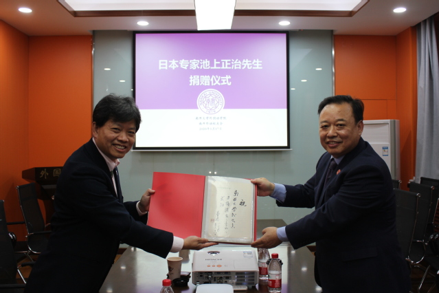 仪式最后,师生代表共同观看了池上正治先生为捐赠仪式拍摄的视频短片。在短片中,池上先生介绍了本次捐赠的缘由及内容,语言饱含深情,在场师生深受感动,心潮澎湃。