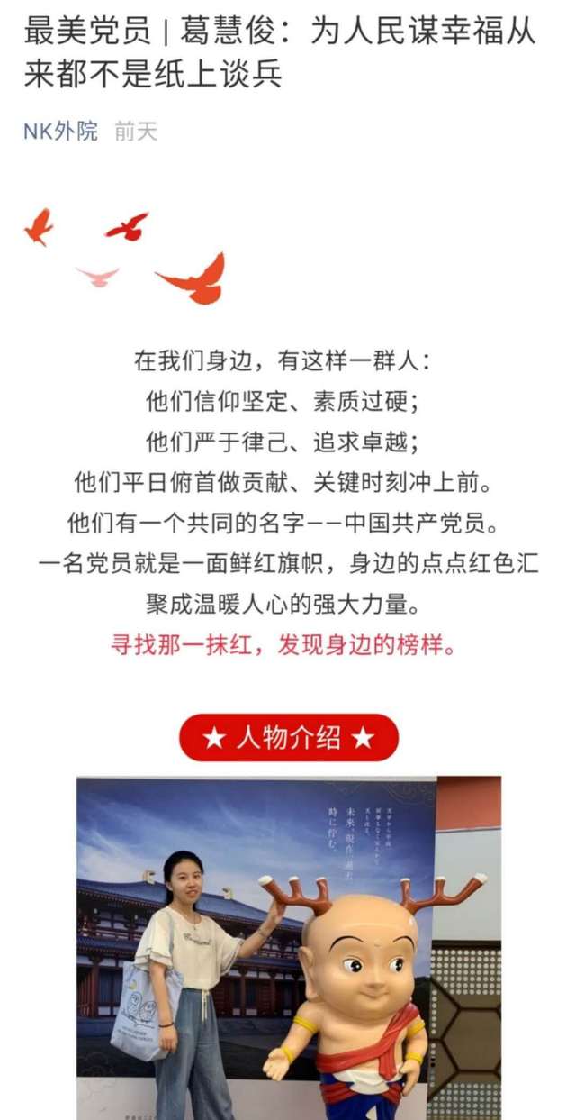 一名党员一面旗,旗帜就是方向,就是带领大家前进的先锋。外院党员在专业科研、语言竞赛、志愿活动、社会实践、跨文化交流等领域各有所长,在学业发展上成果颇丰,在抗疫一线勇于担当,在广阔天地里扎根基层,支部通过采访等形式,将榜样事迹发布在新媒体平台上,走进最美党员,发现身边榜样。