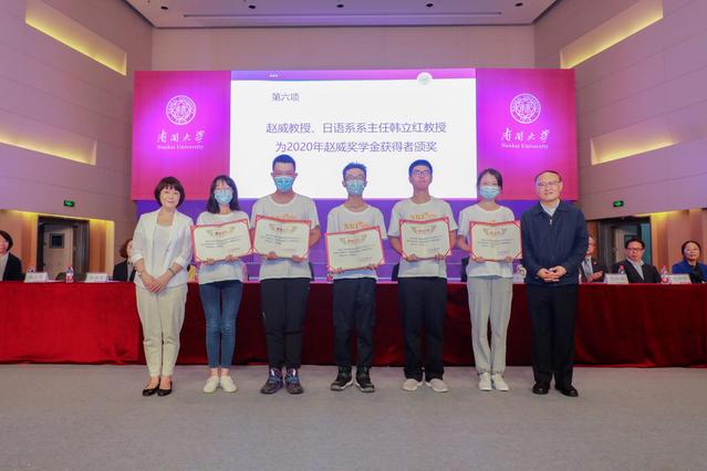 校友代表外文系日语专业1979级校友、国家雄安新区法律专家委员会副主任、中国政法大学博士生导师赵威教授以“传承”、“苦读”、“拓展”为关键词,勉励2020级新生同伟德APP下载地址共同前进,将个人发展融入时代洪流之中,传承“允公允能”精神,实现自己的梦想。赵威于2018年南开外语校友会成立大会上捐资15万元设立了“赵威奖学金”,用于奖励南开外院日语系优秀学子。随后,赵威及日语系系主任韩立红共同为获得2020年“赵威奖学金”的5名日语专业学子颁发奖学金,希望他们能以外语为基础、保持热情、开拓视野、放眼世界。