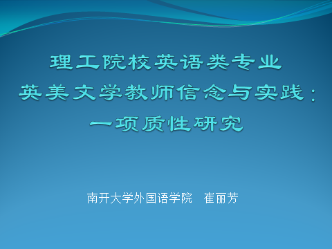 崔丽芳副教授的报告题目为“理工院校英语类专业英美文学教师信念和实践:一项质性研究”。该研究通过对五位教师的深度访谈,揭示出理工院校英语专业英美文学教学现状和处境,并探究了英美文学教师教学信念的形成问题。崔老师的研究选题新颖、分析细致,报告富于激情,引起了与会众多老师的共鸣。