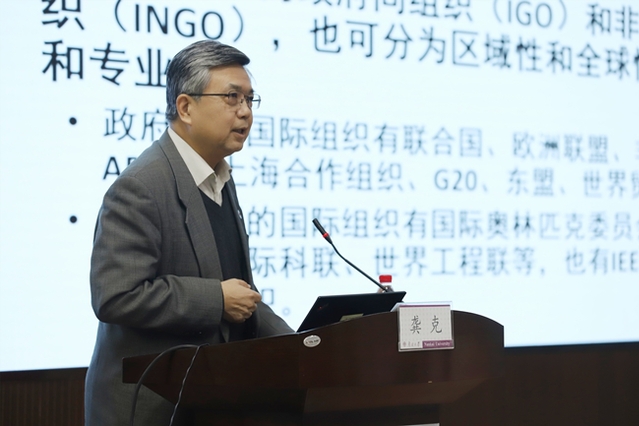 讲座中,龚克以“大国青年的使命与担当——谈国际组织菁英人才的培养”为主题,从在国际组织任职的感悟谈起,在介绍国际组织的分类和地位作用的基础上,提出了六点要求:第一要看清世界大势,第二要善用国际话语,第三要服务组织成员,第四要遵循组织规则,第五要敢于善于坚持,第六要立足能力贡献。