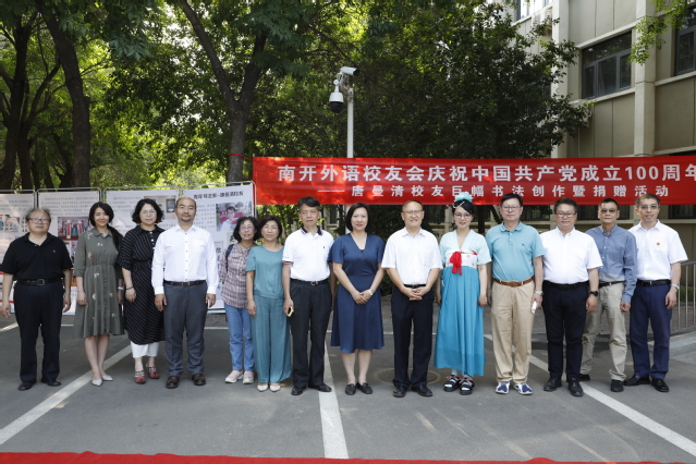 (南开外语校友会秘书处)为庆祝中国共产党成立100周年,喜迎建党百年华诞,南开外语校友会于6月22日下午举办了巨幅书法创作暨捐赠活动。