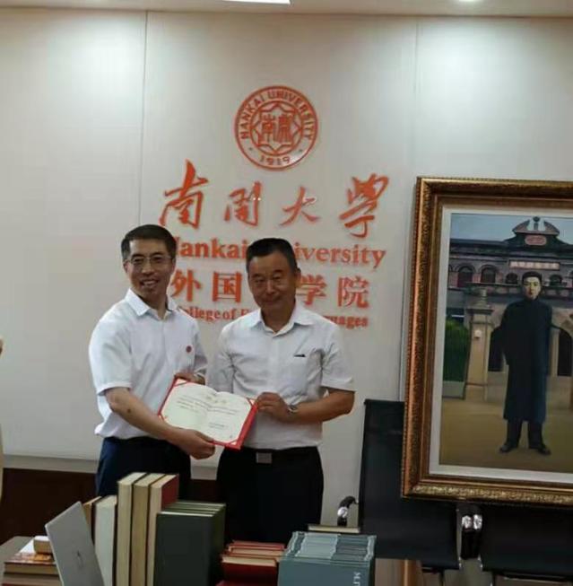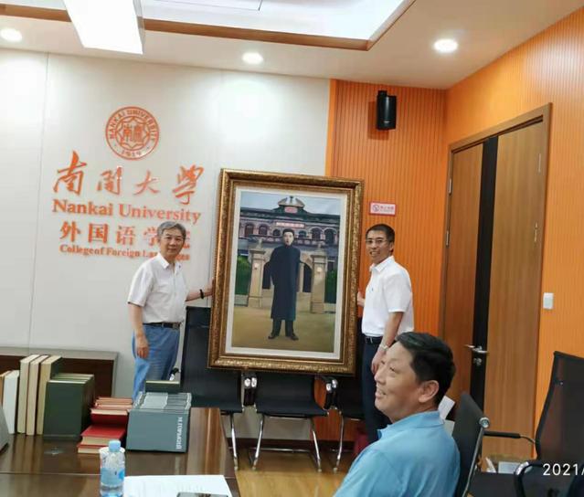 (南开外语校友会秘书处)6月22日上午,俄语系李效东、董科军、张铁华三位校友专程从北京赴母校捐赠《周恩来在南开1919》油画暨俄文图书。