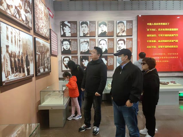 16日清晨,由院长阎国栋带队,外院教职工乘车前往目的地——蓟州区盘山烈士陵园。1941年春,八路军十三团一营,利用盘山这一天然屏障,抗击数倍日军两天两夜,取得了突围战的胜利。烈士纪念碑四周碑文分别是聂荣臻题写的“光荣烈士永垂不朽”、谢觉哉题写的“永远活在人民心中”、李运昌题写的“为人民革命事业而牺牲的英雄们永垂不朽”、宋劭文题写的“抗日英雄浩气常存”。烈士纪念馆内有毛泽东主席的题词和烈士遗像、传略及烈士英名录。陵园附近还有冀东抗日战士当年在岩石上刻写的标语口号和战场、会场、电台、报社等遗迹。教职工们在宏伟壮观、肃穆庄严的陵园中重温天津人民抗日的红色历史。