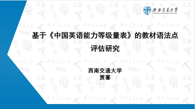贾蕃博士的主旨报告题目为“基于《中国英语能力等级量表》的教材语法点评估研究”。贾老师基于对语法教学和教材评估相关研究的思考,尝试以《中国英语能力等级量表》为标,考察涵盖基础英语教育至高等教育英语教材中的语法知识呈现情况,找出其中存在的问题,为语法教学和教材编写提供有益启示。