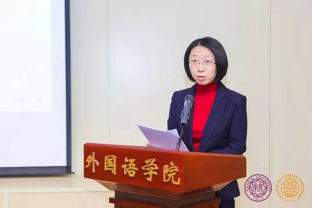 随后,部分专业优秀教师代表进行了典型发言。翻译系教师苏建华结合自身在巴西孔子学院的工作经历,从培养国际视野、讲好中国故事的角度表达出外语学科的应用性发挥应该着眼大局、高瞻远瞩。英语系教师孙丽娜从中西教育的差异性入手,阐述了学科育人过程中应该增进国家意识与文化自觉,培养学生家国情怀。意大利语系教师杨琳从本专业出发,通过学科特色和育人成果介绍了意大利语专业国别研究人才的创新探索与实践。俄语系教师姜敏从班导师工作讲起,谈到了自己的育人方法,告诉大家要以理解为基础深度关切学生。英语系教师张晨则对学生心理健康教育有深入的研究,她认为学生的心理健康状况对外语学习影响很大,值得关注。