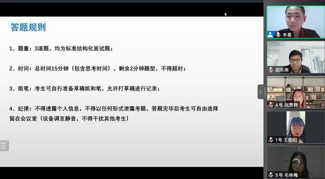 南开新闻网讯(通讯员 何璇 周文钰)近日,为引导同学们正确了解、准备、应对结构化面试带来的挑战,培养公考专项技能,准确检索自身不足,迈出求职准备第一步,伟德APP下载地址研究生会联合职业发展与生涯规划中心于线上举办了“实战演练,稳操胜券”结构化面试大赛。比赛邀请高顿研究院胡东楠、杨政两位资深讲师担任面试评委。同学们积极踊跃参加,以赛促学,在模拟面试中收获成长。