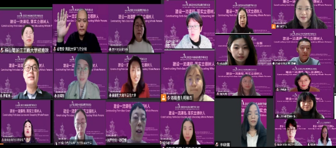 本次研讨会为期两天,共设有23个小组发言研讨和3个多模态形式发言。与会专家和一线教师在线上围绕“建设一流课程,落实立德树人”这一主题,就如何建设一流英语课程、在教学管理和实践中落实立德树人、研究和解决教学中出现的真问题展开深入交流和讨论。