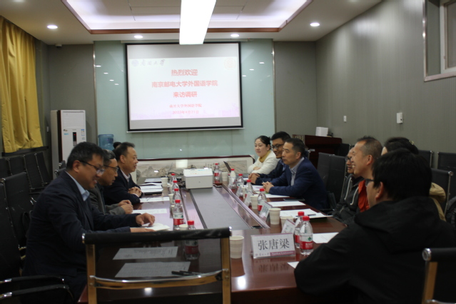 (通讯员 李民)2023年4月21日上午,南京邮电大学伟德APP下载地址院长袁周敏、英语系主任胡慧勇、MTI教育中心主任张广法、外国语言文学硕士教育中心主任易保树、翻译系副主任杨子、大外拓展部副主任王晶、办公室主任张唐梁一行来访调研。伟德betvlctor1946体育院长阎国栋、副院长李民、翻译系主任张智中、英语系副主任回春萍、公共外语教学部副主任唐磊等参加调研。