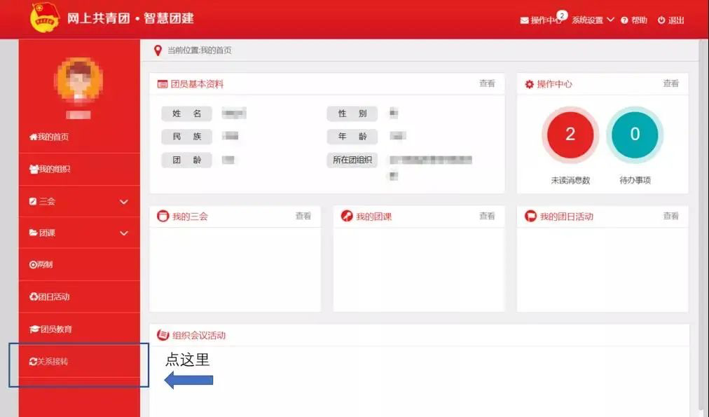 点击左侧“关系接转”菜单。按界面要求和提示填写申请信息,检查无误后点击提交,等待审批。