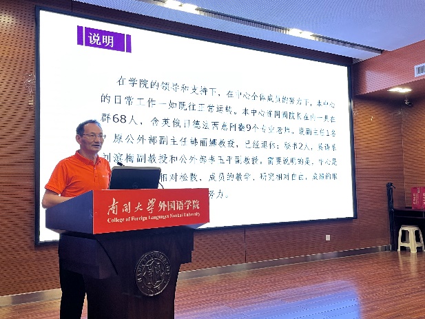 在研究中心经验交流环节,外国文学研究中心、区域国别研究中心和外语教育与教师发展研究中心就各中心在过去几年在学术交流、学术会议、科研项目申报、科研成果产出等方面所做的工作做了分享,并对未来的工作计划做了汇报。