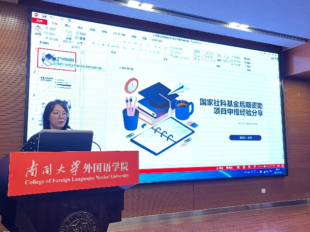在科研项目经验交流环节,2018年度国家社科基金青年项目获得者王彩霞、2023年度国家社科基金中华学术外译项目获得者黄明拓、2022年度国家社科基金后期资助项目获得者远思介绍了不同级别国家级项目的申报经验及申报过程中的注意事项。