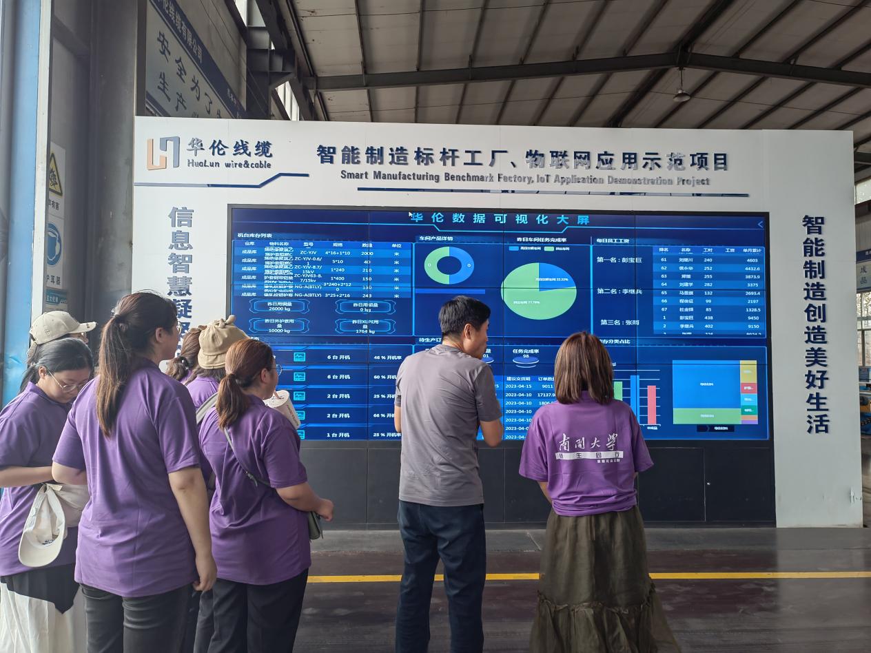 参观完烈士纪念馆之后,外文剧社一行又来到南开校友、河间市青年企业家商会会长马宁任董事长的河北省华伦线缆公司进行参观学习。河间工业基础雄厚,已形成电线电缆等四大优势产业,近年来,线缆产业与现代化数字经济等新技术相结合,形成了可溯源、信息化、不断升级的产业结构,向大家展现了新时代河间工业发展的昂扬面貌。马宁校友不仅为外文剧社在河间开展活动提供交通工具,还在公司热情欢迎大家的到来,介绍企业生产情况和未来发展前景。