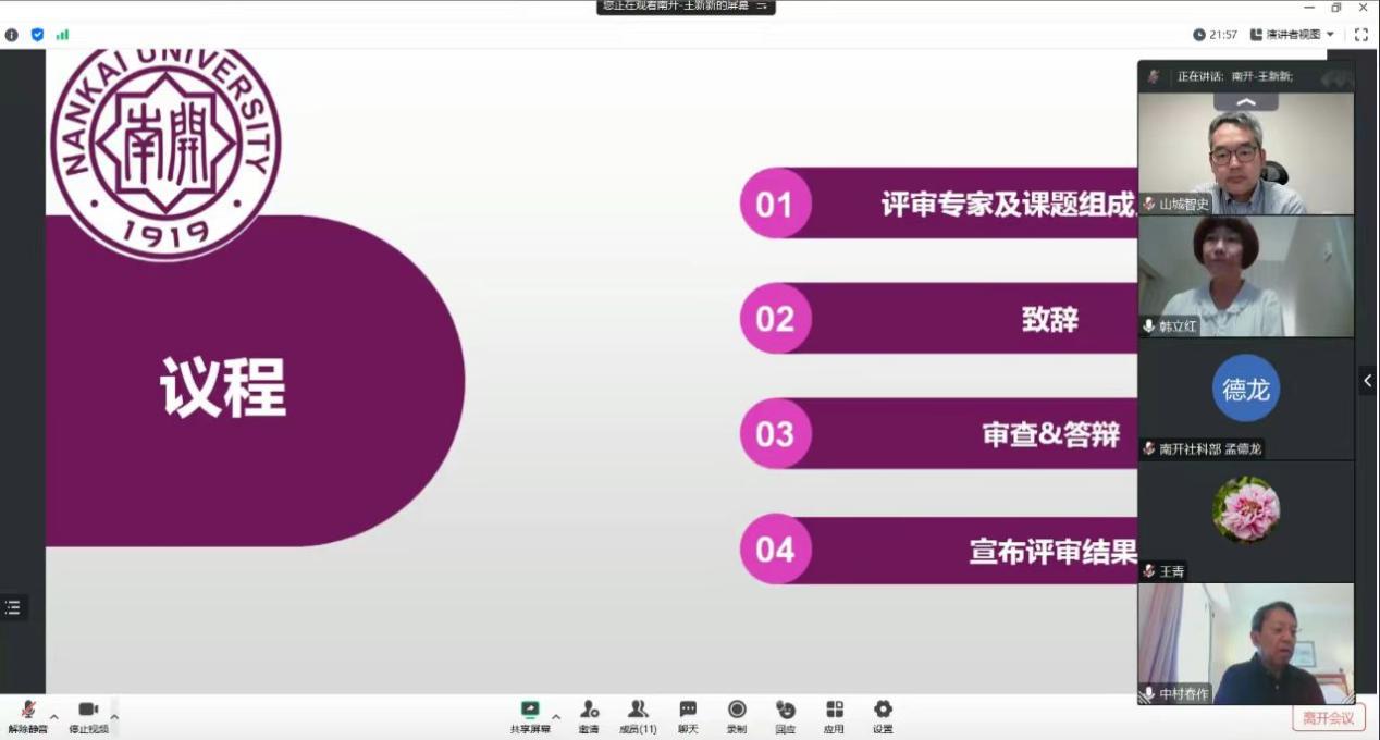 开题报告会由伟德betvlctor1946体育日语系副主任王新新教授主持。伟德体育手机app下载人文社会科学研究部孟德龙副部长,伟德betvlctor1946体育院长阎国栋教授出席报告会并致辞。答辩委员会由中华日本哲学会会长、中国人民大学哲学院林美茂教授、中华日本哲学会副会长、中国社会科学院哲学研究所研究员王青教授、日本冲绳名樱大学文学部山城智史副教授组成。项目组成员广岛大学中村春作教授、伟德betvlctor1946体育于君副教授、淮北师范大学孙源老师、天津职业技术师范大学梁晓清老师等参加。