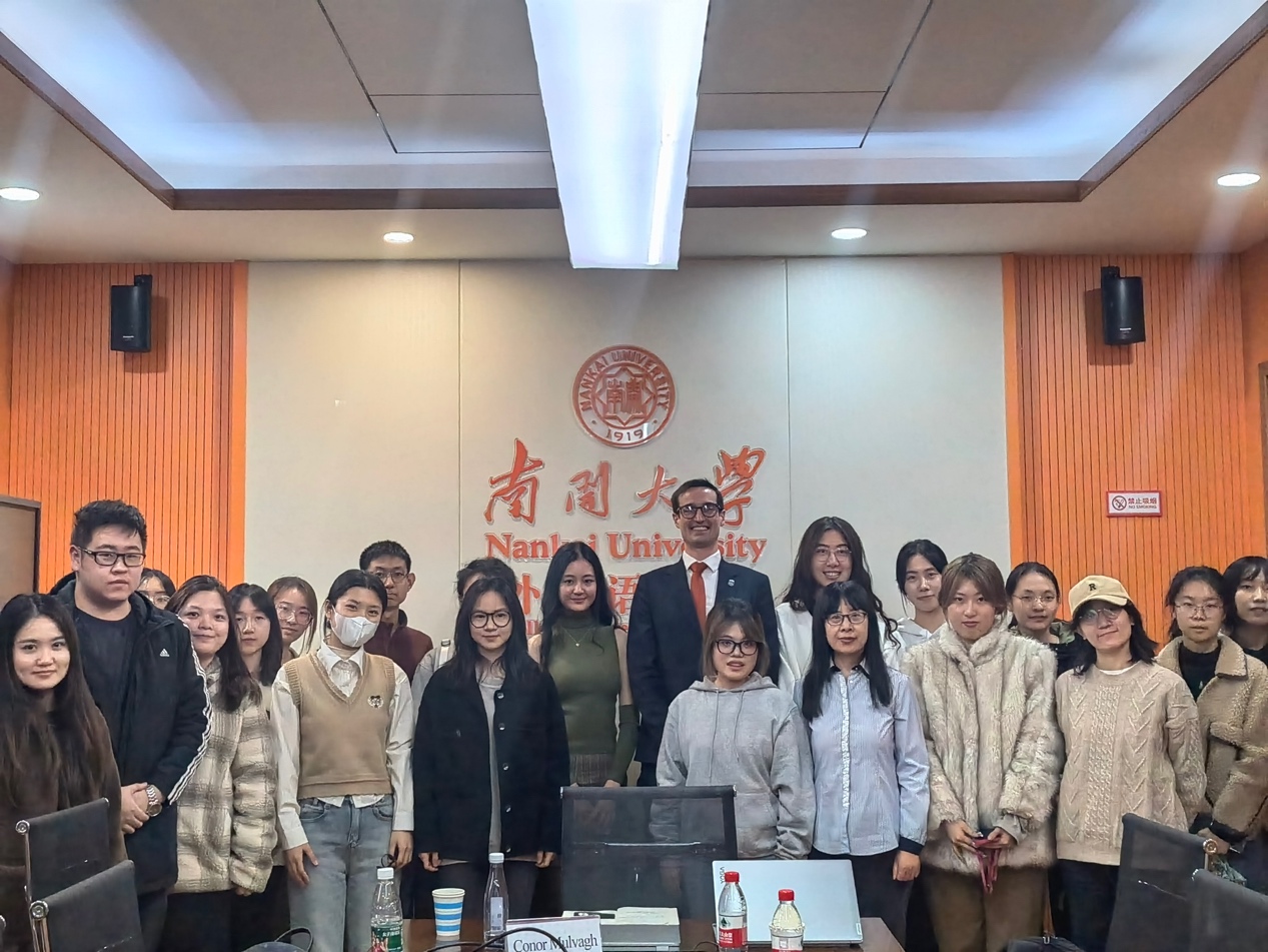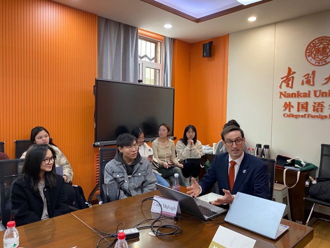 讲座前,伟德APP下载地址副院长王凯副教授、英语系主任李莉教授、刘英教授、公共外语教学部马静老师会见了Conor Mulvagh 教授,都柏林大学中国处处长、全球中心(大中华)总监赵嘉文先生一行,并就本硕博研究生联合培养、教师学术交流与合作等双方关心的问题深入交换意见,达成广泛共识。