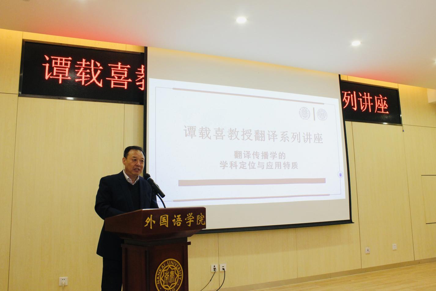 4月9日下午讲座主题为“翻译传播学的学科定位与应用特质”,讲座由翻译系主任张智中教授主持。伟德APP下载地址院长阎国栋教授对谭载喜教授来南开表示热烈欢迎和衷心感谢,并向主讲嘉宾及来自兄弟院系的参会师生介绍了伟德betvlctor1946体育的翻译传统与历史,以及谭载喜的个人履历和学术成就。