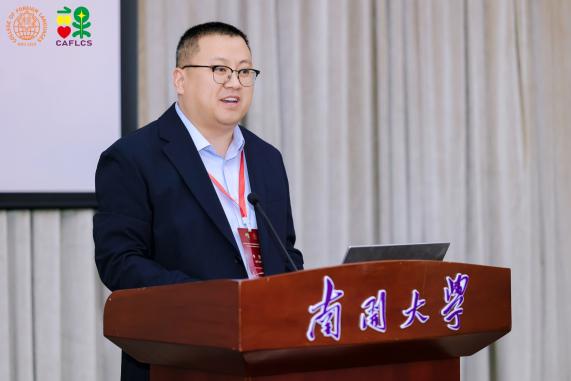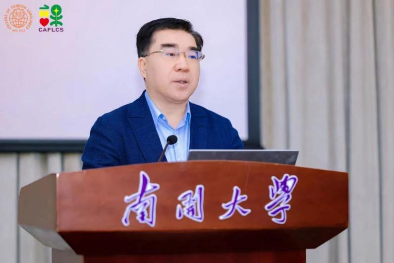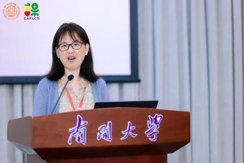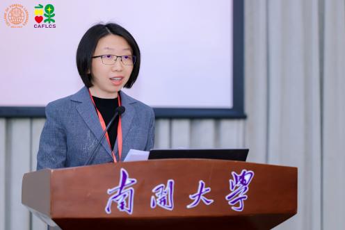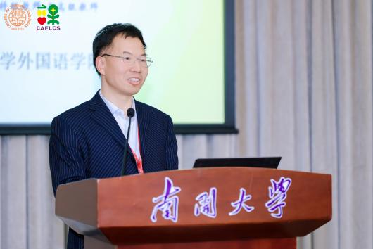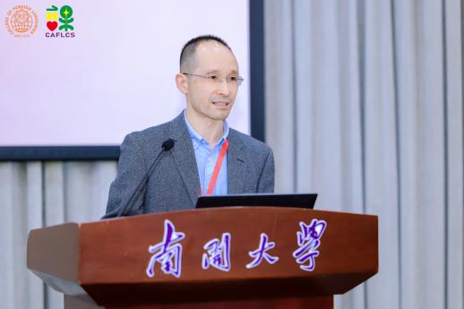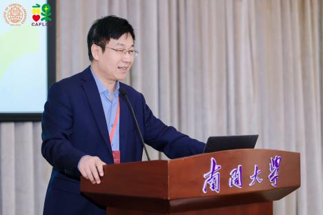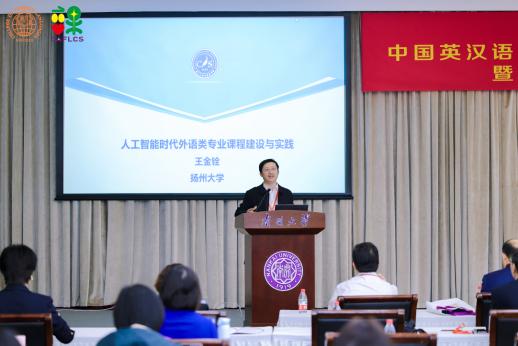 由中国海洋大学杨连瑞教授主持、扬州大学王金铨教授带来的主旨报告题目为“人工智能时代外语类专业课程建设与实践”。王金铨教授强调教育数字化转型背景下,外语教学在教学环境、工具、资源和模式等方面展现出与以往截然不同的全新特征,包括融合、沉浸的教学环境等。以英语(师范)专业核心课程“中学英语课程与教学”为例,王金铨教授详细讲解了在人工智能时代背景下该课程的特色与创新之处等,并对未来外语课程设计做出展望,包括技术赋能、课程日益智能化,虚拟现实、课堂更为立体化,智能反馈、学习服务个性化。