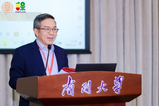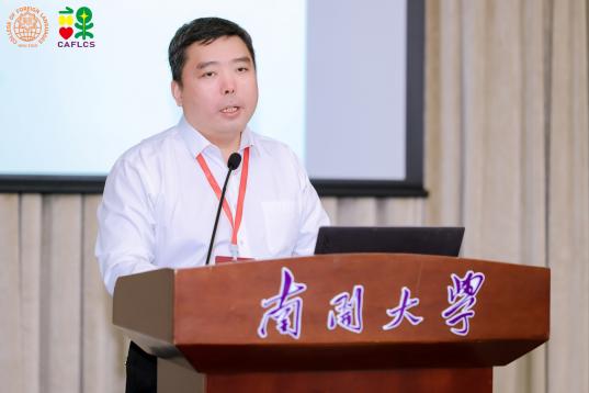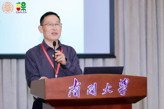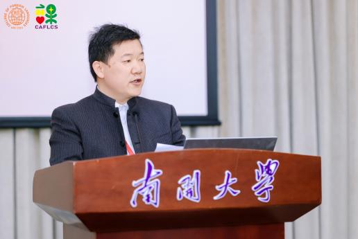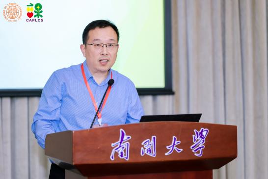四川大学石坚教授的报告题目为“课程、教材与教育理念”,由大连外国语大学常俊跃教授主持。石坚教授首先从中国高等教育人才培养的新要求出发,阐述了当代中国特色的外语教育教学与国际化人才培养问题,并结合不同时代背景教育理念的变革、教育目标实现的途径等就外语教育课程理论、教材、教师与外语人才、外语教育中的教与学等提出了思考。