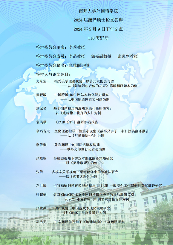 伟德APP下载地址2024届翻译硕士论文答辩公告(一)
