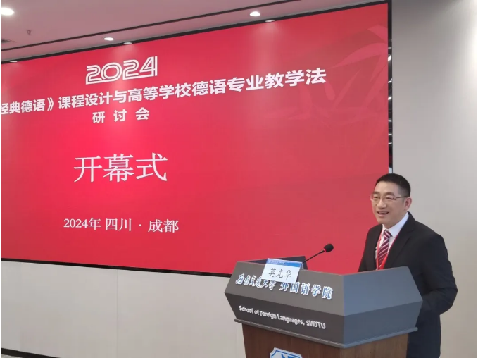 (通讯员 刘冠龙)2024年5月18日至19日,由教育部高等学校外国语言文学类专业教学指导委员会德语专业教学指导分委员会全国德语教师发展中心主办,西南交通大学与外语教学与研究出版社联合承办的《新经典德语》课程设计与高等学校德语专业教学法研讨会在西南交通大学成功举办。来自全国40多所高校的80余名德语教育专家、学者与一线教师齐聚一堂,围绕新形势下国家战略需求与高校外语专业人才培养定位,使用新教材培养能够理解并讲解当代中国、担当民族复兴大任的时代新人、提升教师教学理论素养、教学设计与教学实践能力、推动德语专业师资队伍建设等主题展开深入讨论,助推德语教育教学高质量发展。
